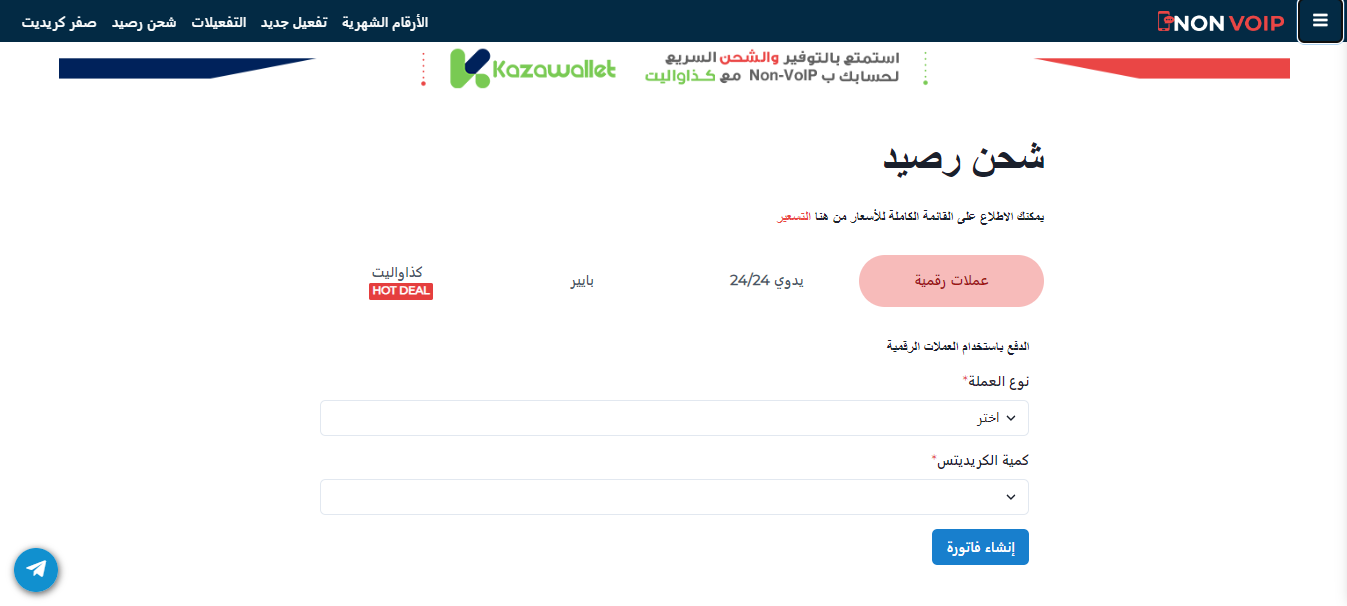 إذا كنت ترغب في إضافة رصيد إلى حسابك على Non-VoIP، فاتبع هذه الخطوات البسيطة: